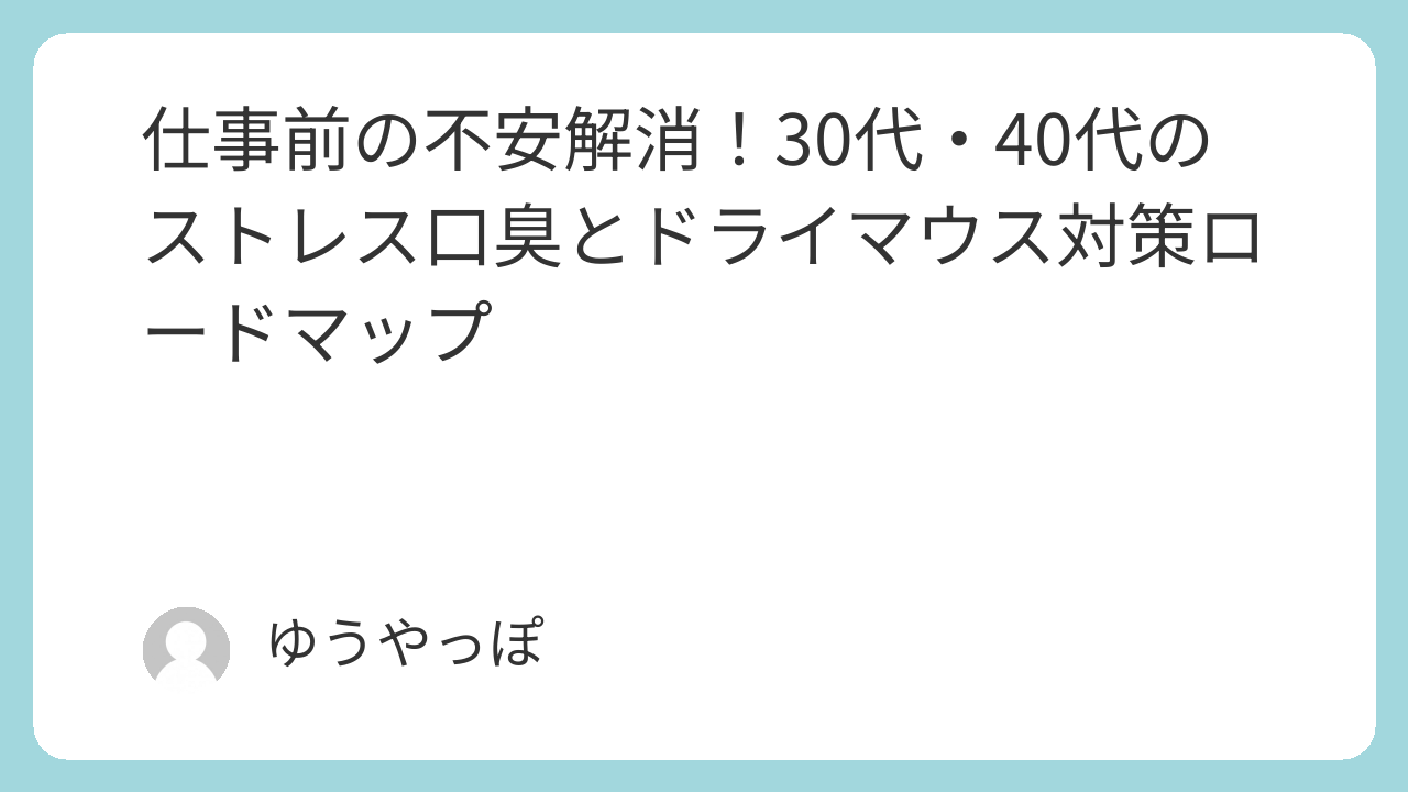 仕事前の不安解消!30代・40代のストレス口臭とドライマウス対策ロードマップ