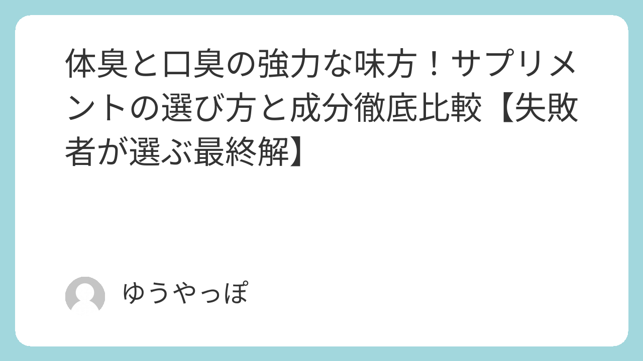 私、ゆうやっぽは、過去のサプリメント選びで高額な費用を失った失敗経験から、**「ニオイをごまかすこと」や「一時的な効果」**を目的としたサプリは選びません。