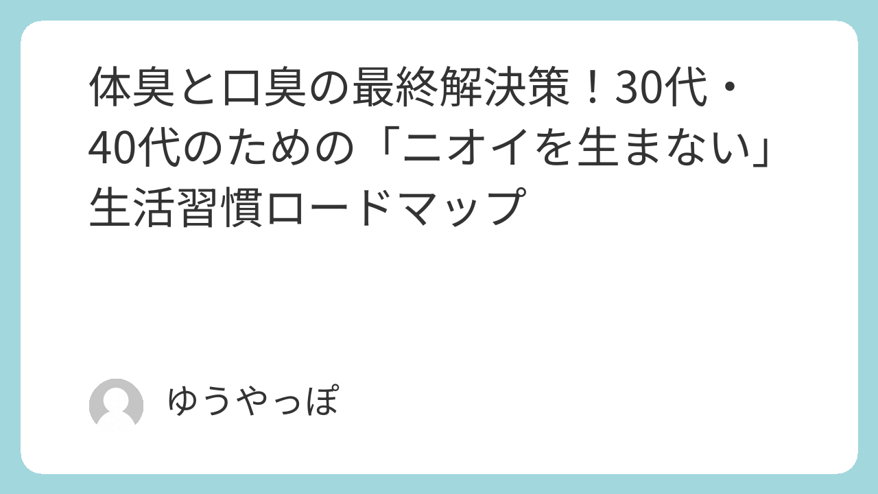 この記事は、あなたがニオイの不安から完全に解放されるための**「生活習慣ロードマップ」です。睡眠、運動、ストレス管理のたった3つの要素を見直すだけで、ニオイを生まない「無臭体質」**を完成させることができます。